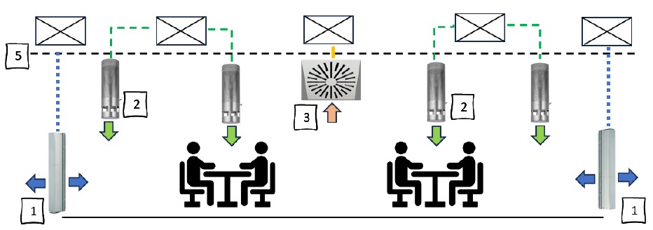 En algunos edificios logísticos existen espacios donde trabaja personal de forma sedentaria, y que hay que acondicionar climáticamente. Pero a la vez, el funcionamiento del edificio requiere de una máxima transparencia y flexibilidad, por lo que no es posible independizar físicamente esos espacios.