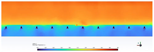 Mediante estudios de CFD (dinámica computacional de fluidos), validados con mediciones realizadas en tiempo real, hemos construido un modelo digital del edificio. En el modelo hemos introducido y validado la solución de climatización localizada que cumple los requisitos de permeabilidad exigidos y genera una reducción en emisiones de CO2 de un 45%, respecto a una solución inicial que consistía en atemperar la totalidad del edificio